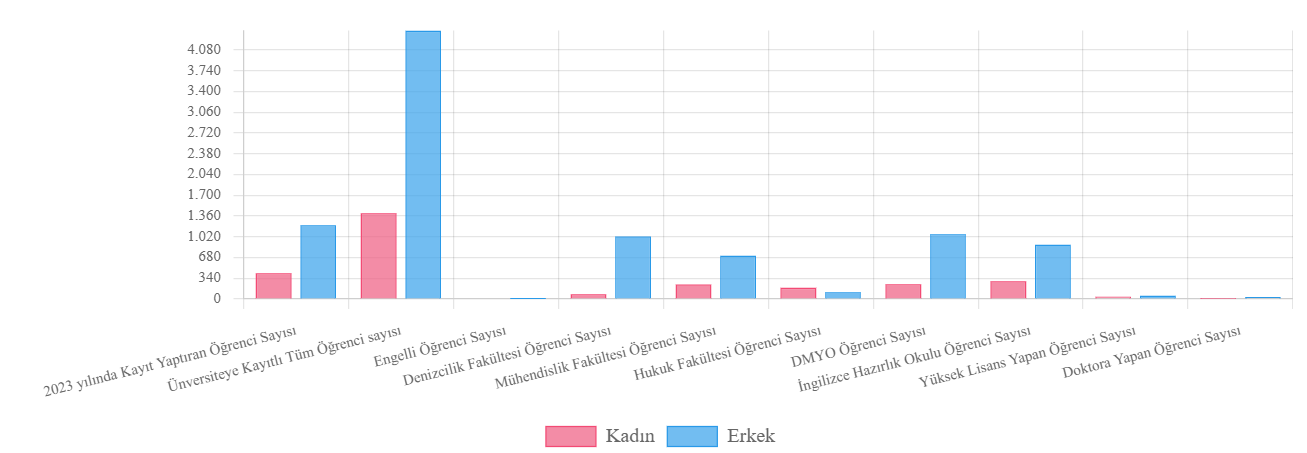This graph shows the gender distribution of the student population at our university. The data is an important indicator in assessing our gender balance and equality goals. Gender distribution is a reflection of our efforts to ensure diversity and inclusiveness in our educational institutions.