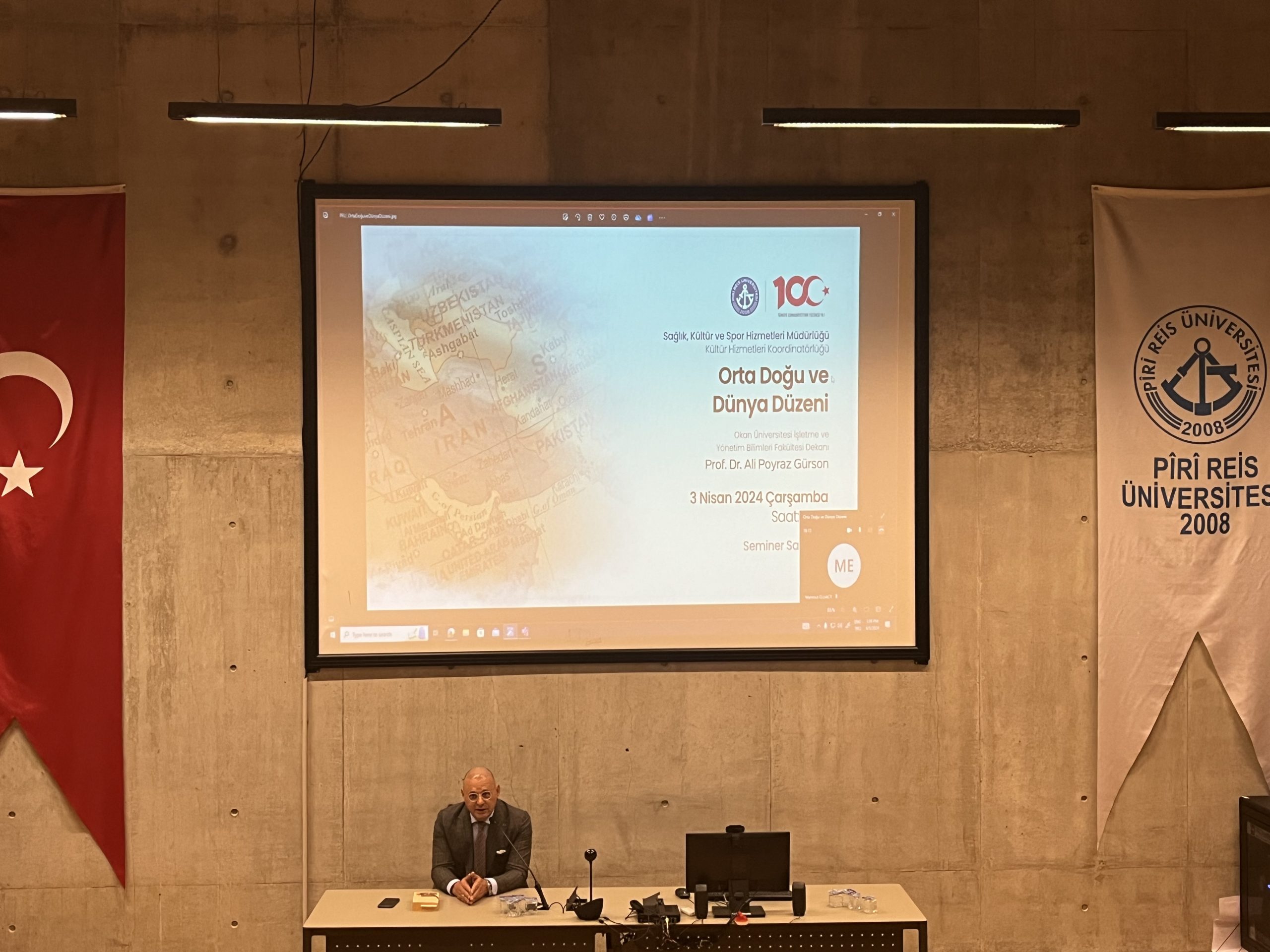 As the Cultural Coordinator, a talk was held by Okan University Faculty of Business and Administrative Sciences Dean Prof. Dr. Ali Poyraz Gürson about “The Middle East and World Order”.