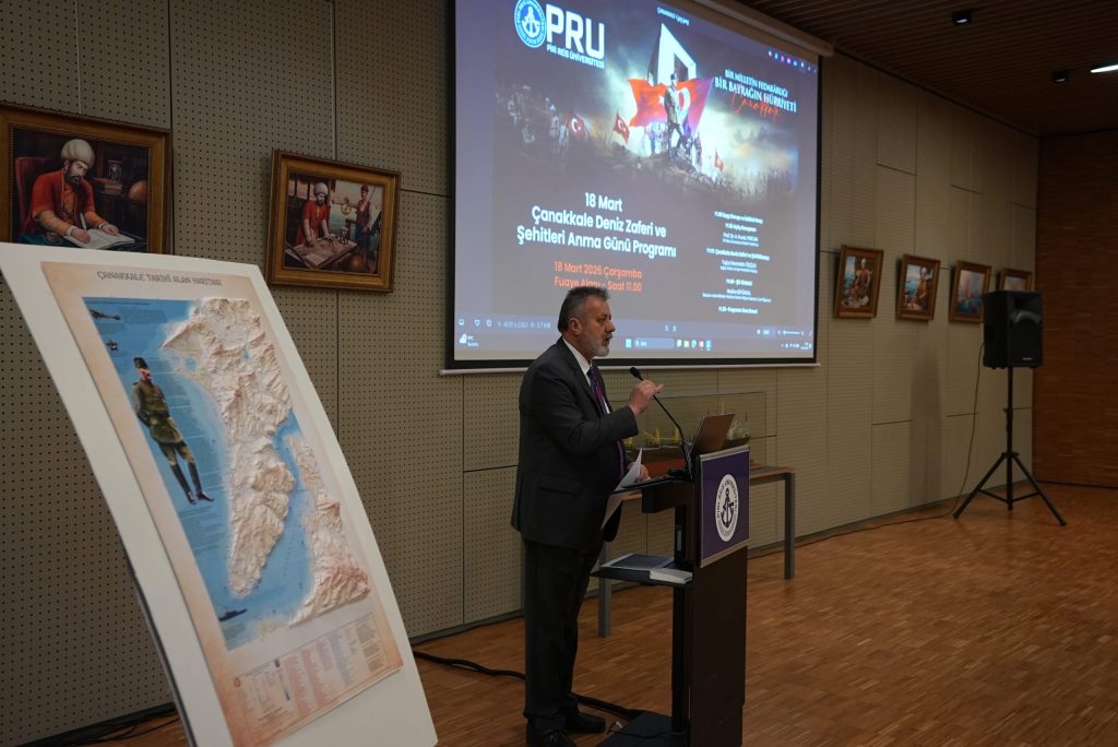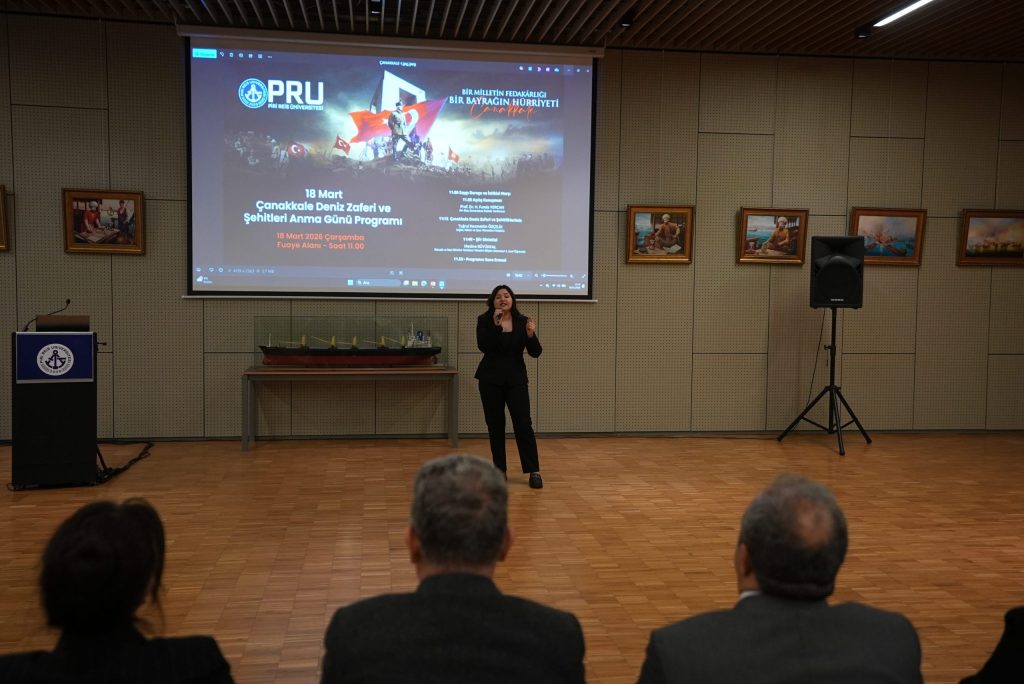 Saygı duruşu ve İstiklal Marşı ile başlayan programımızın açılış konuşması Piri Reis Üniversitesi Rektör Yardımcısı Prof. Dr. Funda YERCAN tarafından gerçekleştirilmiştir. Ardından programımız, Sağlık, Kültür ve Spor Müdürü Necmettin ÖZÇELİK tarafından yapılan “Çanakkale Deniz Zaferi ve Şehitliklerimiz” başlıklı sunum ile devam etmiştir.