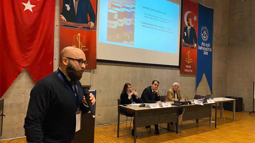 Çalıştayın açılış konuşmaları sonrası ilk oturumda, uluslararası ve bölgesel düzenleyici mekanizmalar değerlendirildi. Uzman akademisyenler, IMO hedefleri doğrultusunda yeşil yakıt kullanımı, denizcilik sektöründe karbon salınımının azaltılması için düzenlemeler ve Türkiye’nin uyum çalışmaları üzerine sunumlar gerçekleştirdi. Ardından yeşil yakıtların tedarik süreçleri ve sözleşmeler başlığı altında, yakıt havuzlama mekanizmasının hukuki niteliği ve enerji verimliliğini artırma stratejileri masaya yatırıldı.