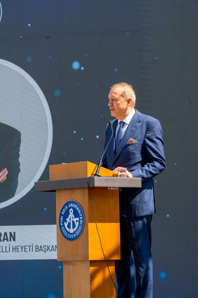 Törenin en dikkat çekici konuşmalarından biri, İMEAK Deniz Ticaret Odası Yönetim Kurulu Başkanı ve Piri Reis Üniversitesi Mütevelli Heyeti Başkanı Tamer Kıran’a aitti. Kıran, mezunların Türk denizcilik sektörüne yön verecek nitelikte donanımlı bireyler olduğunu ifade ederek, “Bu ülke denizcilikle büyüyor ve sizin gibi nitelikli gemi insanlarına ihtiyacı var. Diplomanızı alıyorsunuz ama asıl mücadele şimdi başlıyor” şeklinde konuştu. Atatürk’ün “Tek bir şeye ihtiyacımız vardır: Çalışkan olmak” sözüyle gençlere seslenen Kıran, mezunlara daima üretken, ilkeli ve azimli bireyler olmaları yönünde tavsiyelerde bulundu.