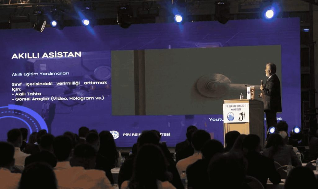 Piri Reis Üniversitesi Rektörü Prof. Dr. Nafiz Arıca, Denizci Öğrenciler Derneği tarafından düzenlenen 24. Ulusal Denizkızı Kongresi’ne katılarak açılış konuşmasını yaptı. Rektörümüz, konuşmasının ardından “Denizcilik Eğitimi ve Yapay Zekâ” başlıklı sunumuyla denizcilik alanında dijital dönüşüm ve yapay zekânın sunduğu imkânları değerlendirdi.