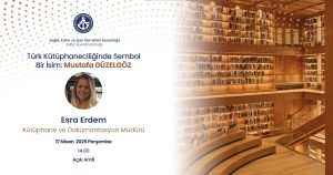 14. “Türk Kütüphaneciliğinde Sembol Bir İsim: Mustafa GÜZELGÖZ” Sunumu- Kütüphane ve Dokümantasyon Müdürü Esra Erdem ( 17 Nisan 2025 – Kültür  Koordinatörlüğü)