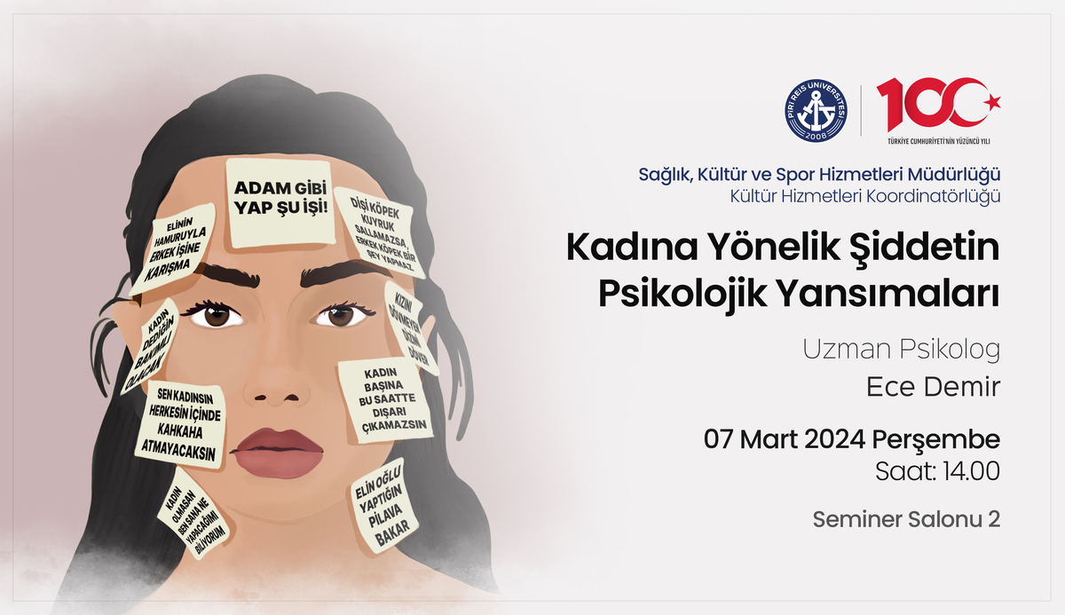 Kültür Koordinatörlüğü olarak Üniversitemizin PDR Birimi’nden Uzman Klinik Psikolog Ece Demir tarafından “Kadına Yönelik Şiddetin Psikolojik Yansımaları” başlıklı bir sunum gerçekleştirildi.