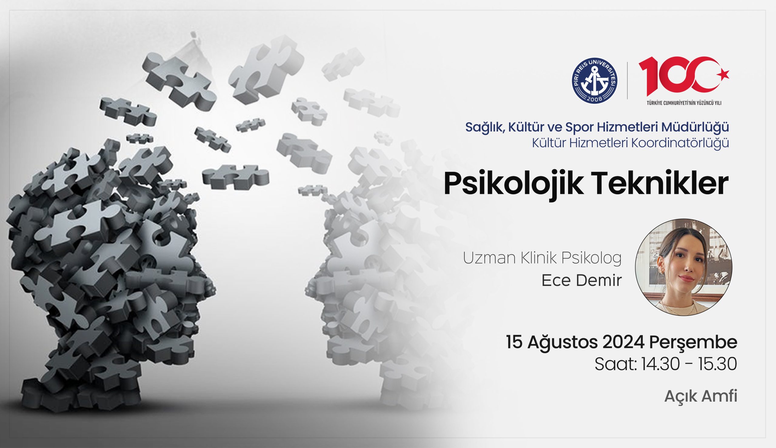 Kültür Koordinatörlüğü olarak Üniversitemizin PDR Birimi’nden Uzman Klinik Psikolog Ece Demir tarafından Üniversite personelinin günlük yaşamını kolaylaştıracak, onların mental sağlıklarına yardımcı olacak bazı tekniklerin yer aldığı “Psikolojik Teknikler” konulu bir sunum gerçekleştirmiştir.