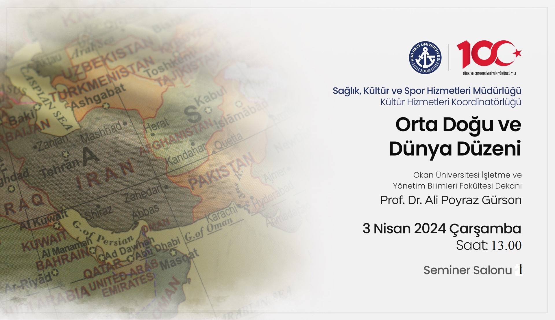 Kültür Koordinatörlüğü olarak Okan Üniversitesi İşletme ve İdari Bilimler Fakültesi Dekanı Prof. Dr. Ali Poyraz Gürson tarafından “Orta Doğu ve Dünya Düzeni” hakkında bir söyleşi gerçekleştirildi.